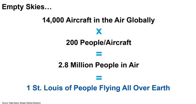 大摩认为,解决地面交通拥堵的终极方案是利用“空荡荡的天空”。目前全球空中仅有约14000架飞机,而在地面拥堵至极。