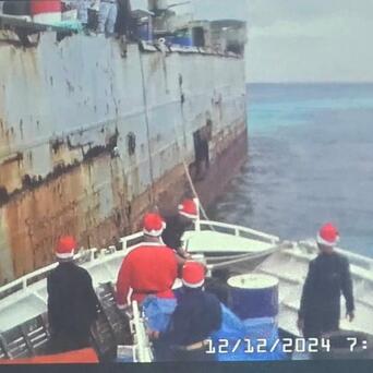 菲律宾人扮成圣诞老人,向仁爱礁送圣诞礼物,中国海警全程监管